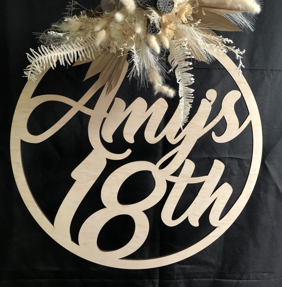 Our word rings are the perfect event signage! Customise your colour to suit your theme and create your home decor item, gift or even a great feature backdrop for a birthday! Our 18th personalised name birthday word ring can be customised in timber or Acrylic (white, black, silver, gold, rose-gold) and personalise with your name creating the perfect gift or  keepsake for a significant birthday.