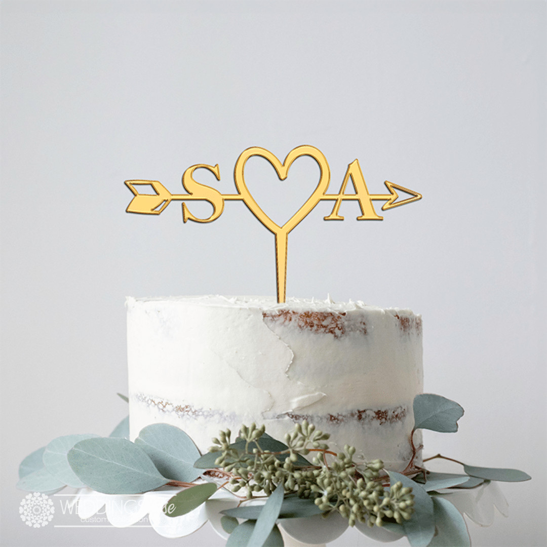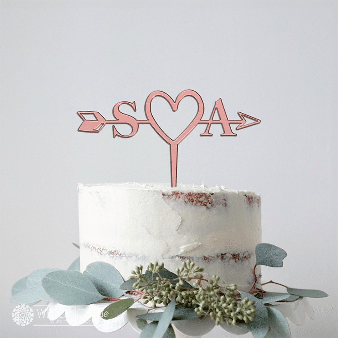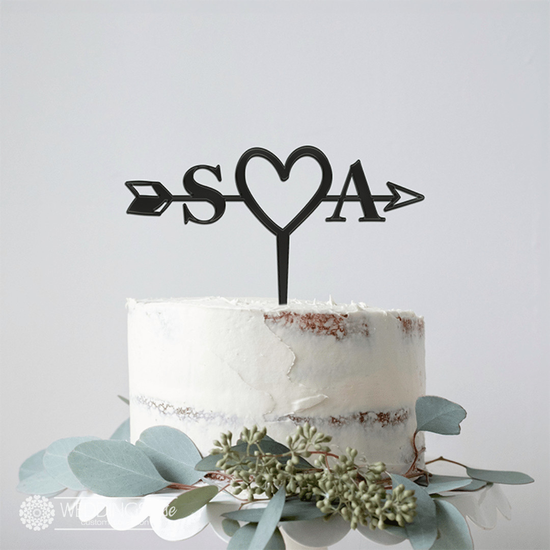 Custom Initials with Heart Arrow Cake Topper Personlised Wedding Cake Docoration