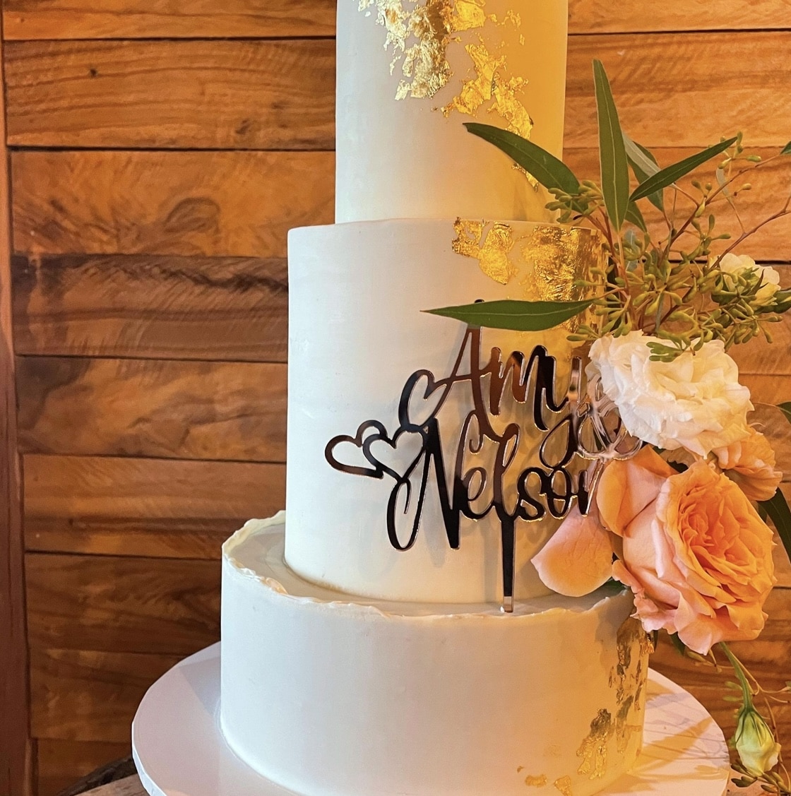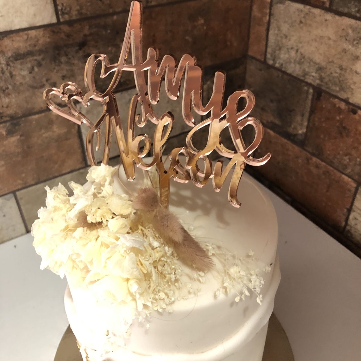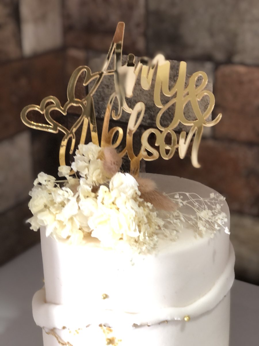Available in a variety of finishes—including timber, gold mirror, rose gold mirror, silver mirror, black acrylic, and white acrylic—this topper complements any wedding style, from classic and rustic to modern and glamorous. Lightweight and easy to place, it makes your cake the perfect centrepiece while adding a heartfelt, stylish statement to your celebration.