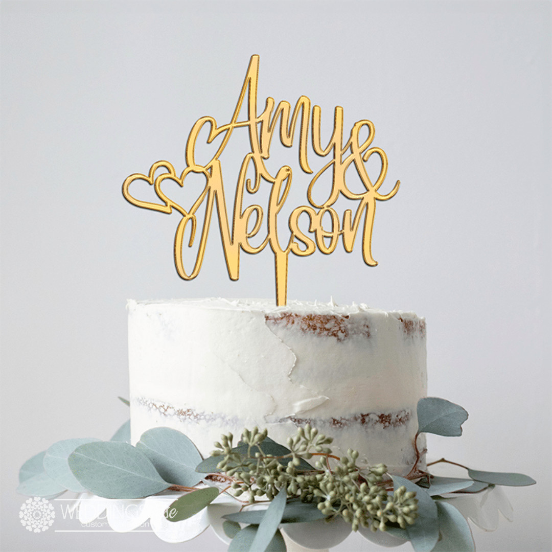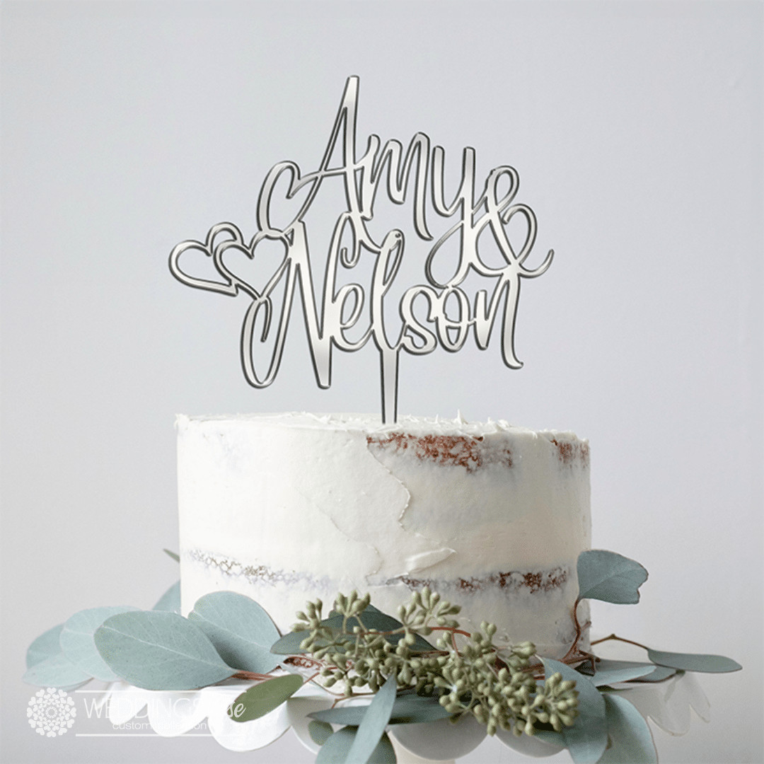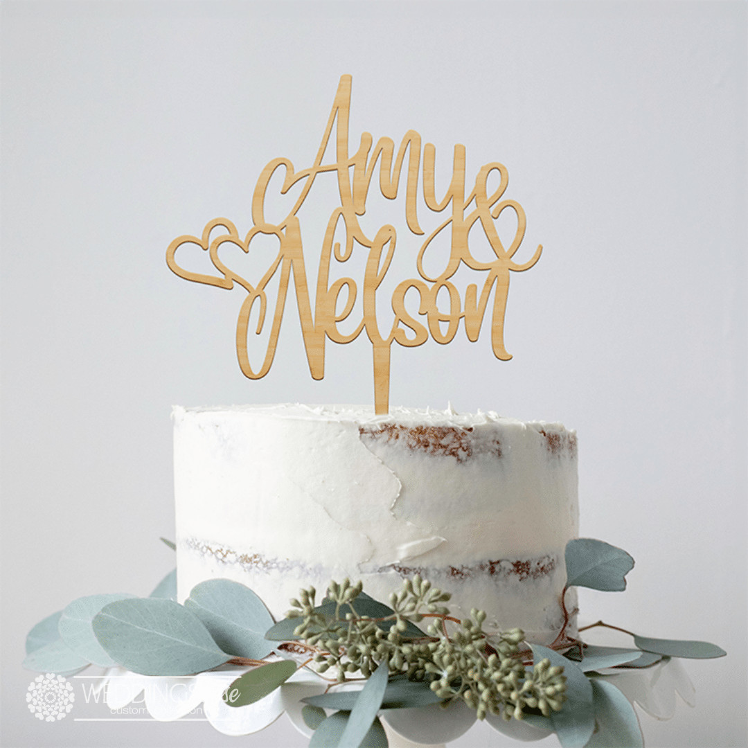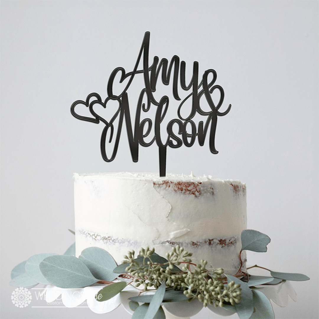 Custom Names With Hearts Cake Topper – Personlised Wedding Cake Decoration
