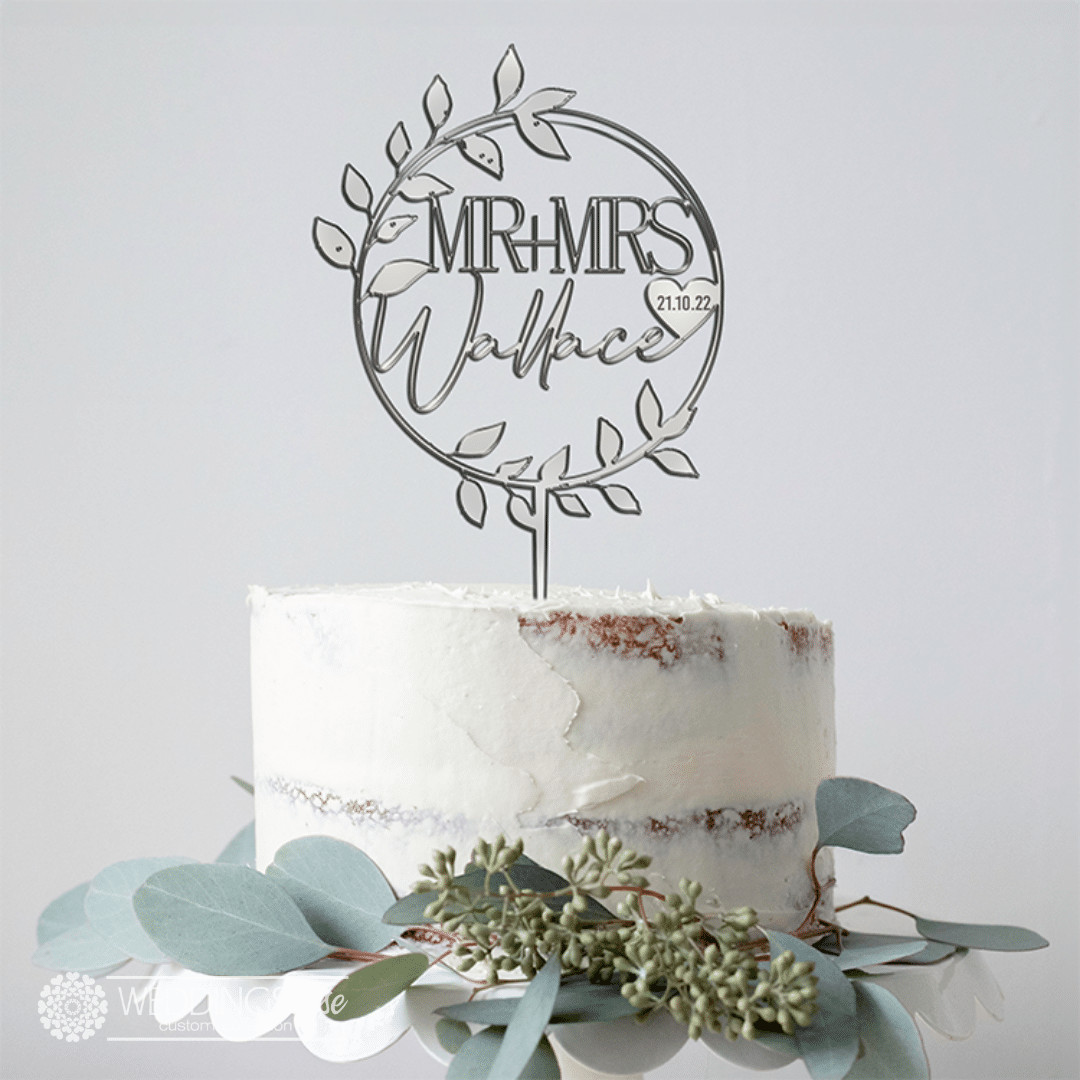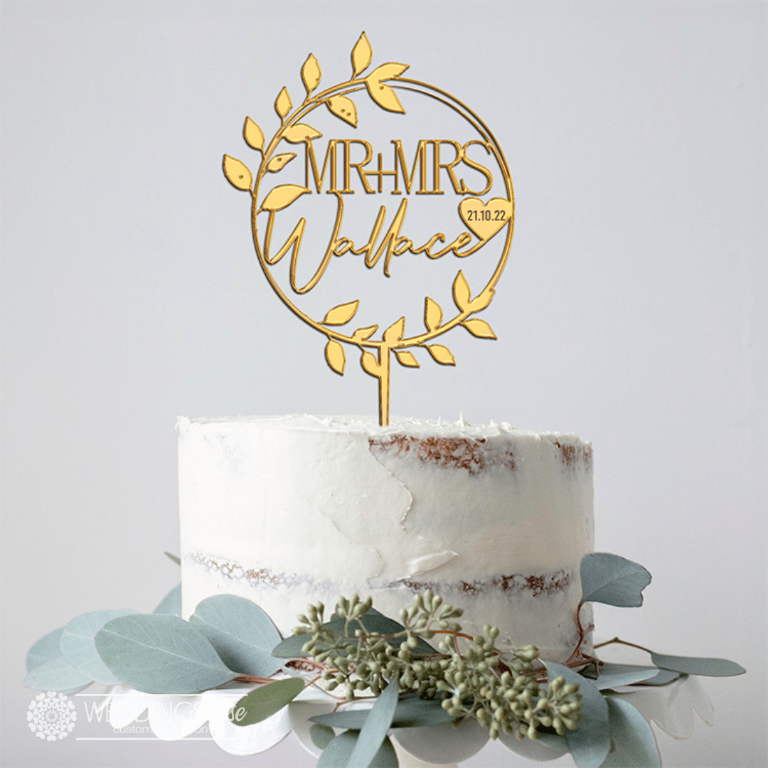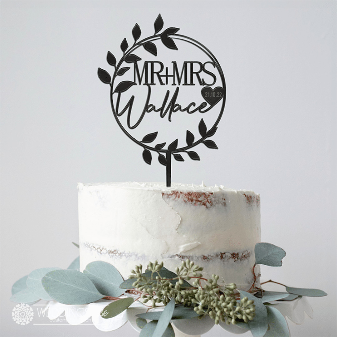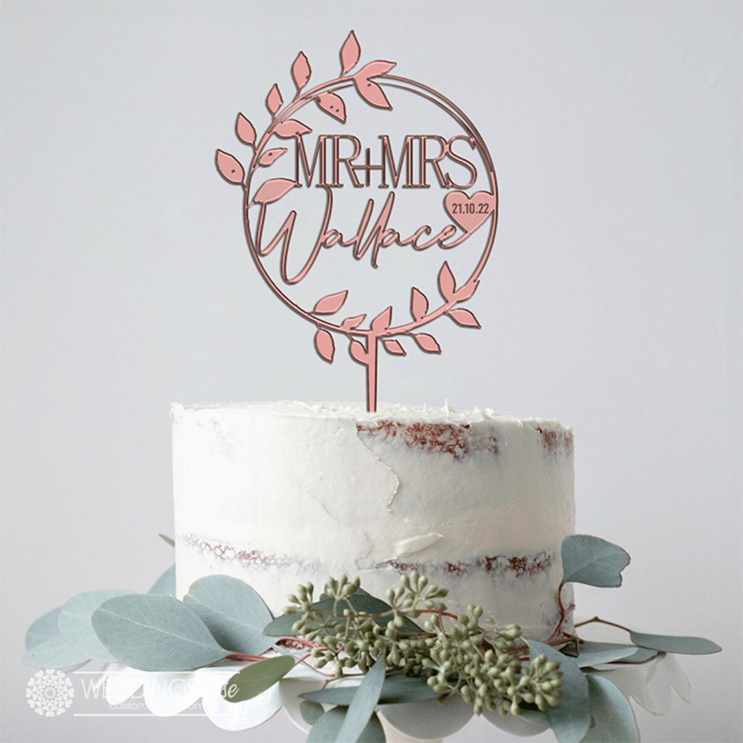 “Mr and Mrs Wreath with Date” Cake Topper- Personlised Wedding Decor