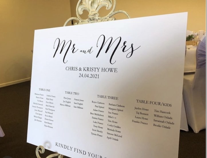 Don’t keep folks guessing, let people know what table they are sitting at with our Mr & Mrs PVC Seating Chart! Create your own unique personalised seating chart. They make a lasting impression and help to keep your special day moving along smoothly.