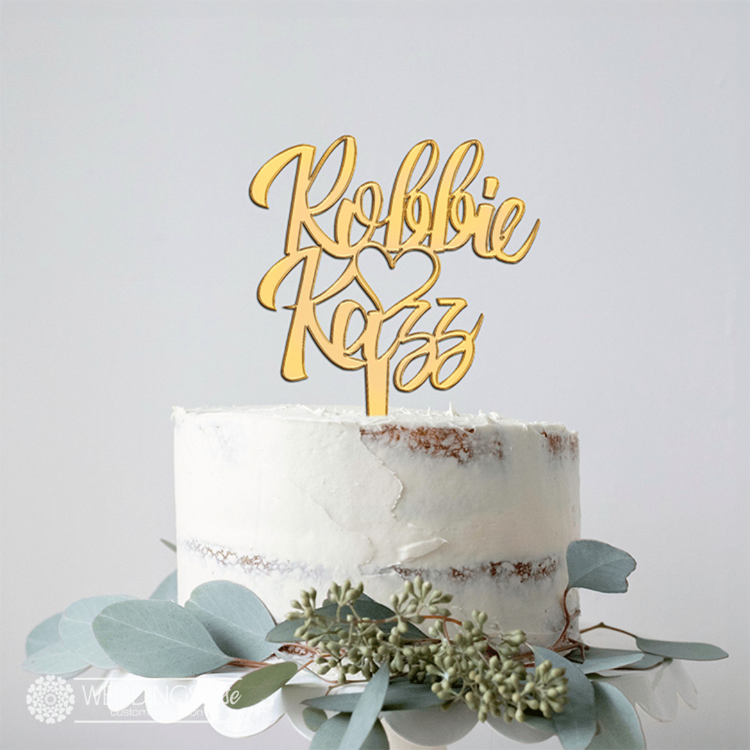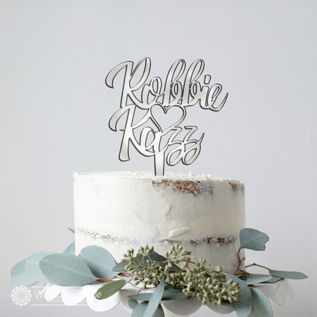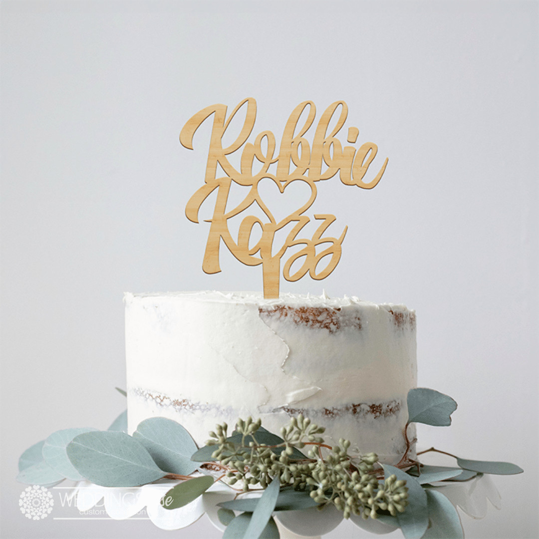 Celebrate your love with our Names with Heart Cake Topper, a personalised topper featuring the first names of the happy couple connected by a delicate love heart. Perfect for same-sex marriages or any couples, this elegant design sits proudly atop your wedding cake, adding a romantic and meaningful focal point to your special day.