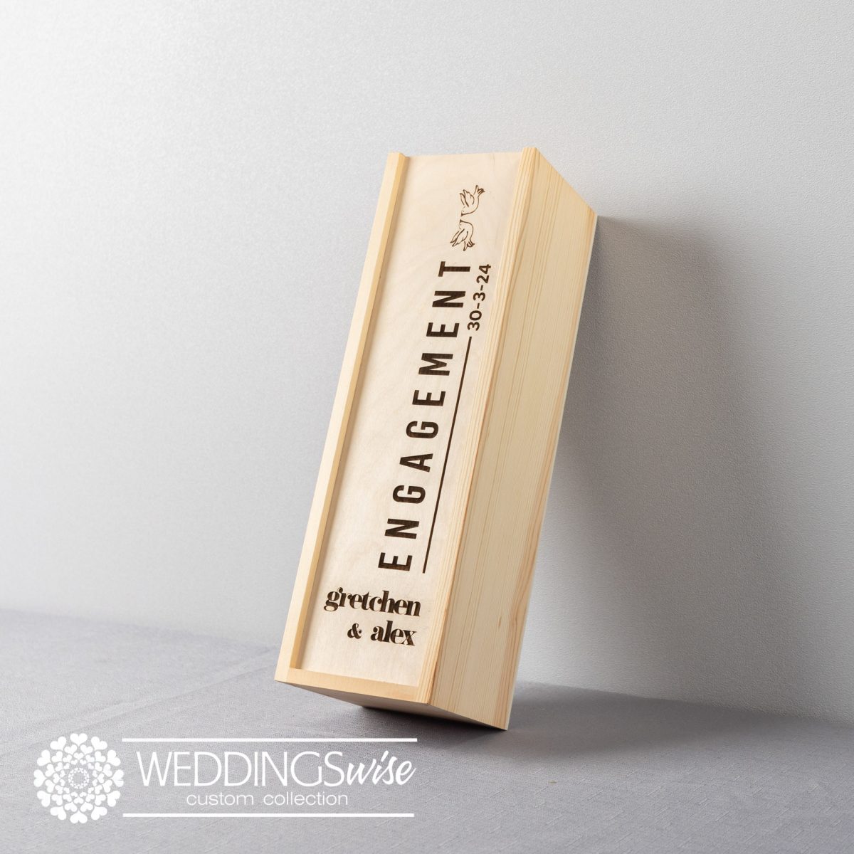Elevate your wedding decor with one of our personalised timber wine boxes, perfect for gifting to your loved ones as a heartfelt gesture. Each wine box is meticulously engraved with your chosen design, adding a unique touch to any occasion. Whether it’s a gift for the best man or groomsman with a favourite bottle of spirit, or for the maid of honour and bridesmaids with a bottle of champagne, the possibilities are endless. Ideal for weddings, engagements, retirements, birthdays, and more, these wine boxes make cherished keepsakes that will be treasured for years to come.