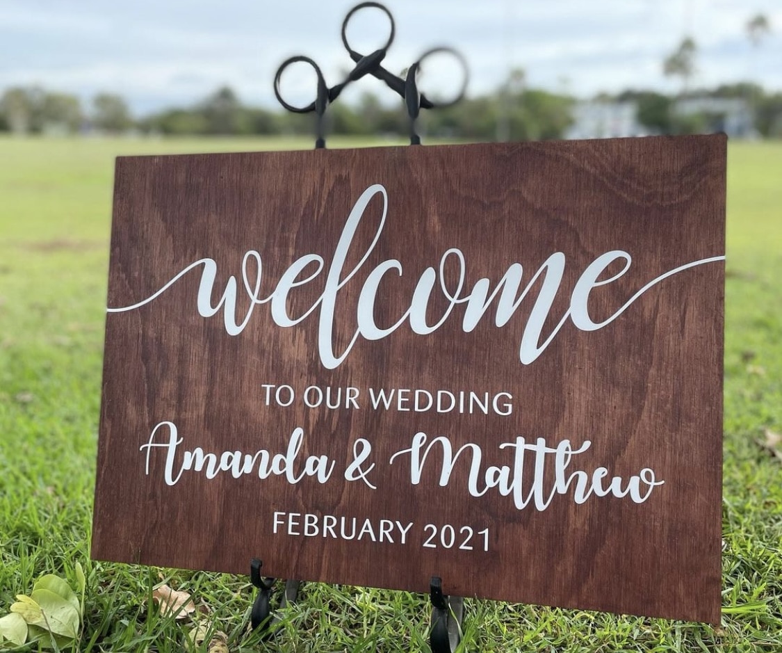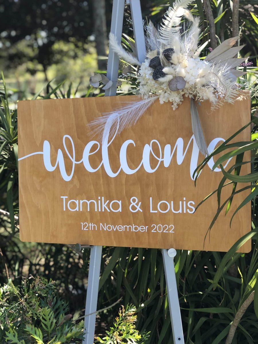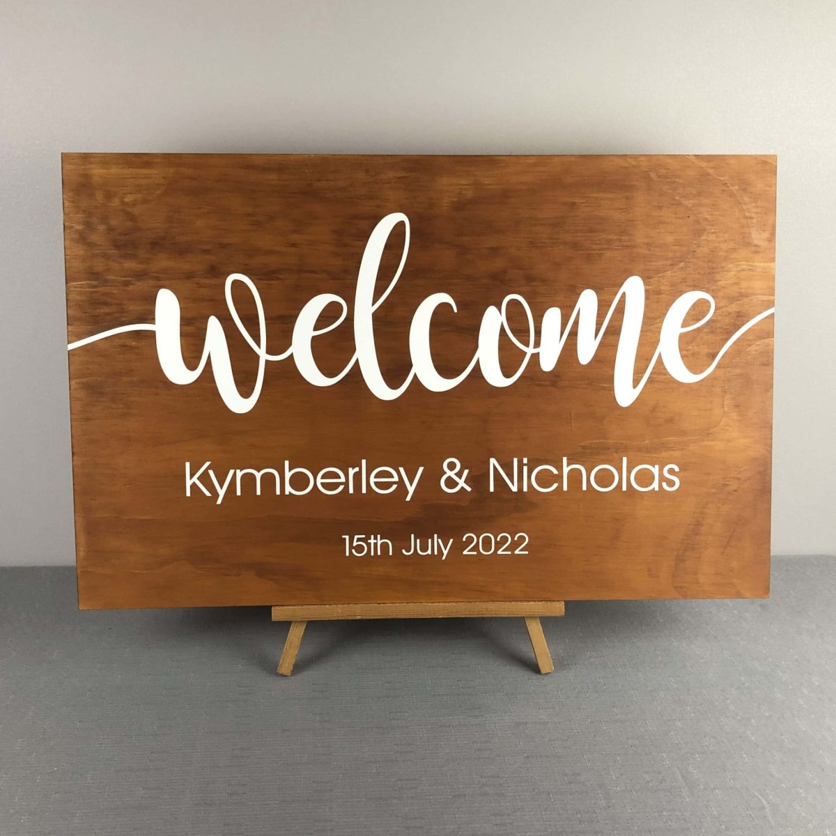 Timber Welcome Sign with Vinyl Lettering, perfect for a gorgeous wedding day and a lovely way to welcome your guests as they arrive. Delight and impress your wedding guests by taking a little time to create your own unique wedding welcome sign, personalised with your names / date and customise your colours and materials. This beautiful customised sign can be placed at the entrance table of your wedding ceremony, easel or reception area. It can also be used as an accent piece in your home as a keepsake of your special day.